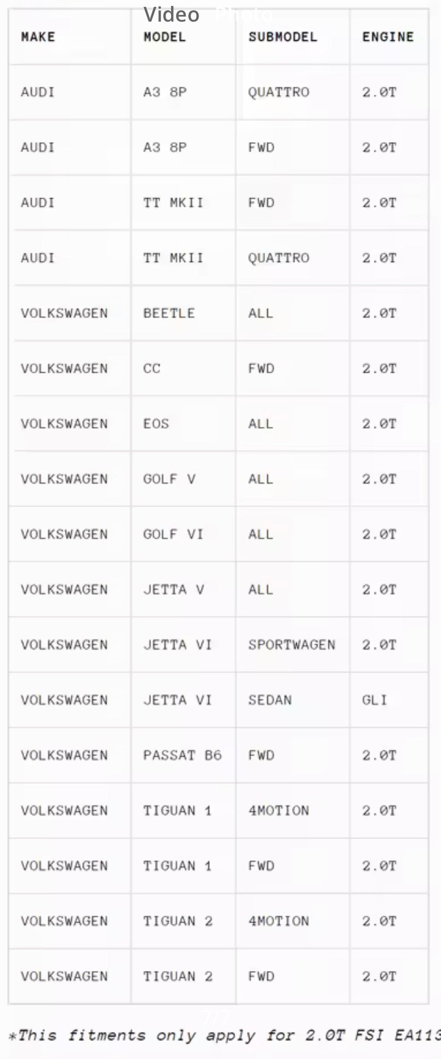 Engine Type: 2.0 TSI Turbo Only